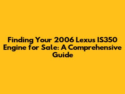 Hey there, car enthusiasts! So, you're on the hunt for a 2006 Lexus IS350 engine for sale, huh? Awesome! You've come to the right place. Owning a Lexus IS350 is like having a piece of automotive luxury and performance rolled into one sleek package. And when it comes to keeping that beauty running smoothly, the engine is king. But hey, engines can be a bit tricky, and finding the right one can feel like searching for a needle in a haystack. No worries, though! This guide is packed with everything you need to know to find the perfect engine for your 2006 Lexus IS350, from understanding your options to snagging a great deal. Let's dive in and get that IS350 purring again!