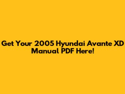 Get Your 2005 Hyundai Avante XD Manual PDF Here!