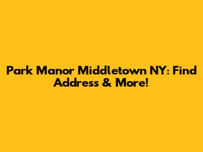 Park Manor Middletown NY: Find Address & More!