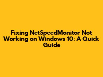 Troubleshooting Steps for NetSpeedMonitor on Windows 10
