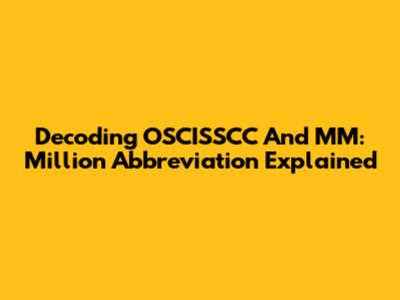 Decoding OSCISSCC And MM: Million Abbreviation Explained