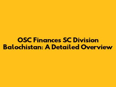 OSC Finances SC Division Balochistan: A Detailed Overview
