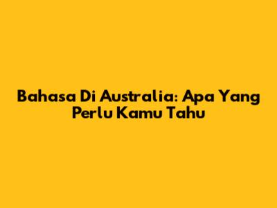 Bahasa Di Australia: Apa Yang Perlu Kamu Tahu