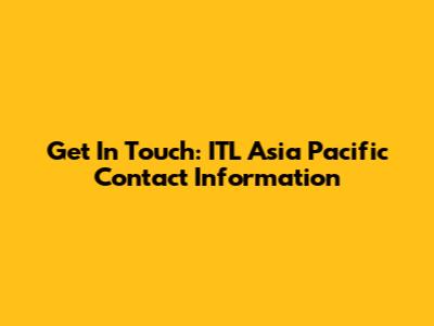 Get In Touch: ITL Asia Pacific Contact Information