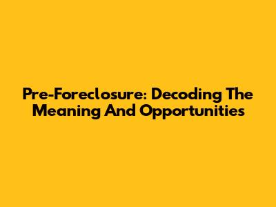 Pre-Foreclosure: Decoding The Meaning And Opportunities