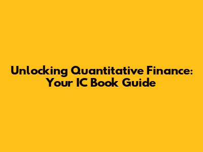 Unlocking Quantitative Finance: Your IC Book Guide