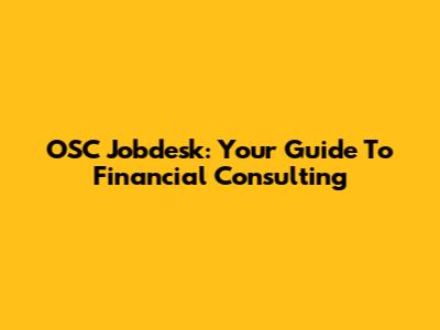 OSC Jobdesk: Your Guide To Financial Consulting