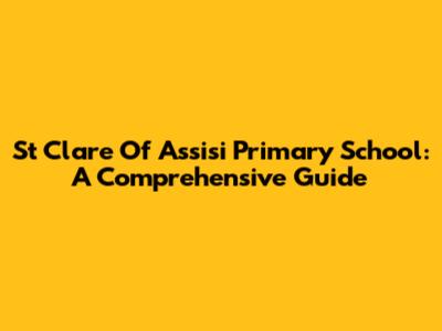 St Clare Of Assisi Primary School: A Comprehensive Guide