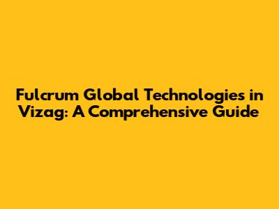 Hey there, tech enthusiasts and job seekers! Ever heard of Fulcrum Global Technologies in Vizag? If you're on the lookout for exciting career opportunities or just curious about the IT scene in this vibrant city, you've come to the right place. We're diving deep into everything you need to know about Fulcrum Global Technologies' presence in Vizag, exploring their services, culture, and what makes them a potential great place to work. So, buckle up, because we're about to embark on a journey through the world of tech in Vizag!