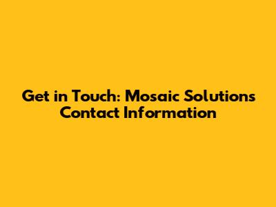 Hey everyone, looking for Mosaic Solutions and their contact info? You've landed in the right spot! Navigating the world of customer service can sometimes feel like a maze, but don't worry, we're here to help you find the information you need. Whether you're a potential client, an existing customer, or just curious about what Mosaic Solutions has to offer, getting in touch is usually the first step. This guide is designed to make that step as easy and painless as possible. We'll dive into the various ways you can reach out to Mosaic Solutions, including phone numbers, email addresses, and even how to find them on social media. So, buckle up, and let's get you connected! We'll cover everything from general inquiries to specific departments, ensuring you have all the tools you need to get your questions answered and your needs met. Let's find out how to connect with Mosaic Solutions. This guide will help you understand where to find the most up-to-date and accurate contact details for Mosaic Solutions. We'll also provide tips on what to do when you have questions about specific services or products. This is your go-to resource for all things related to contacting Mosaic Solutions.