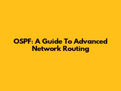 OSPF: A Guide To Advanced Network Routing