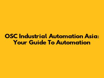 OSC Industrial Automation Asia: Your Guide To Automation