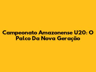 Campeonato Amazonense U20: O Palco Da Nova Geração