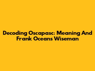 Decoding Oscapasc: Meaning And Frank Ocean's Wiseman