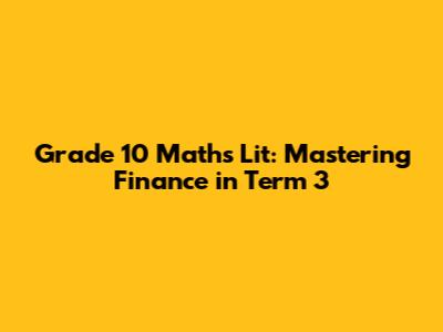 Hey there, future financial wizards! 👋🏾 This guide is your ultimate companion for conquering Grade 10 Maths Literacy in Term 3, specifically focusing on the thrilling world of finance. We're diving deep into the nitty-gritty of money matters, equipping you with the skills to make smart financial decisions, understand investments, and even plan your future riches. Get ready to transform from number-naysayers into finance fanatics! We'll cover everything from simple and compound interest to understanding different investment options. Let's make learning fun and accessible. It's time to unlock the secrets to financial success. We'll break down complex concepts into easy-to-digest chunks, with plenty of examples and real-world scenarios. By the end of this guide, you'll be well on your way to acing those exams and, more importantly, building a solid foundation for your financial future. So buckle up, grab your calculators, and let's get started on this exciting journey! We'll explore the basics of financial literacy, including understanding different types of accounts, budgeting, and the impact of inflation. You'll also learn to calculate and compare different interest rates and investment returns, empowering you to make informed decisions about your money. Furthermore, we will delve into the world of loans and credit, equipping you with the knowledge to navigate these complex financial tools responsibly. Ready to become a money master? Let's go!