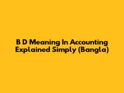 B D Meaning In Accounting Explained Simply (Bangla)