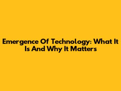 Emergence Of Technology: What It Is And Why It Matters