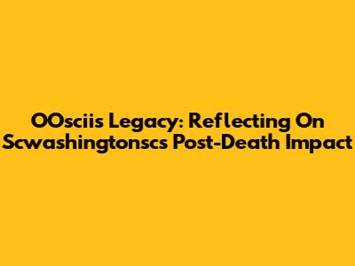 OOscii's Legacy: Reflecting On Scwashingtonsc's Post-Death Impact