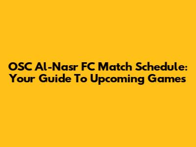 OSC Al-Nasr FC Match Schedule: Your Guide To Upcoming Games