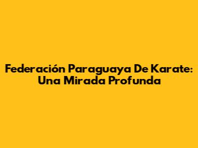 Federación Paraguaya De Karate: Una Mirada Profunda