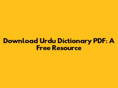 Download Urdu Dictionary PDF: A Free Resource