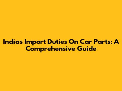 India's Import Duties On Car Parts: A Comprehensive Guide