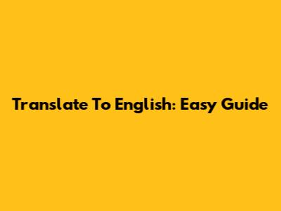 Translate To English: Easy Guide