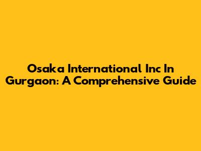 Osaka International Inc In Gurgaon: A Comprehensive Guide