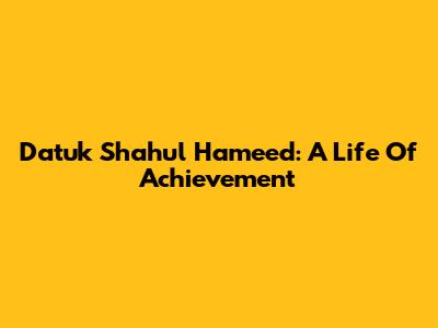 Datuk Shahul Hameed: A Life Of Achievement