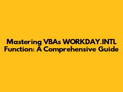 Mastering VBA's WORKDAY.INTL Function: A Comprehensive Guide