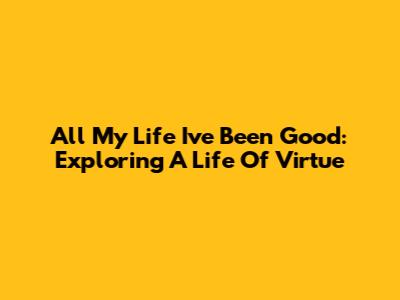 All My Life I've Been Good: Exploring A Life Of Virtue