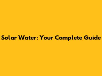 Solar Water: Your Complete Guide