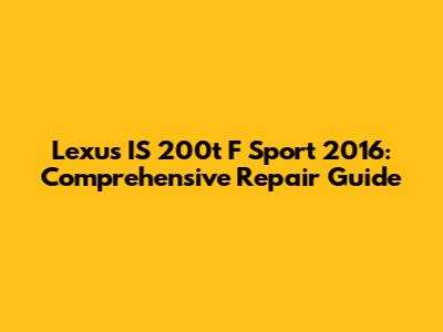 Lexus IS 200t F Sport 2016: Comprehensive Repair Guide