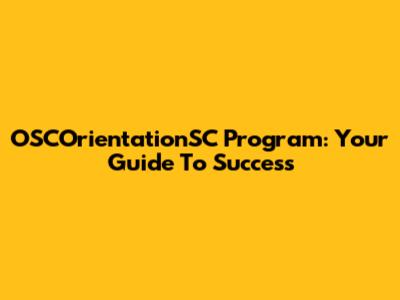 OSCOrientationSC Program: Your Guide To Success