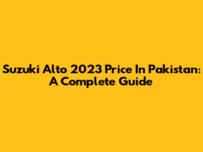 Suzuki Alto 2023 Price In Pakistan: A Complete Guide