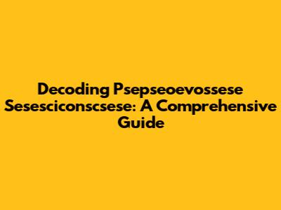 Decoding Psepseoevossese Sesesciconscsese: A Comprehensive Guide