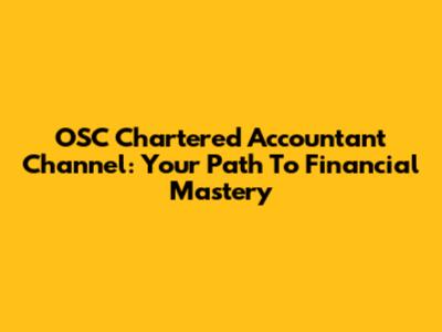 OSC Chartered Accountant Channel: Your Path To Financial Mastery