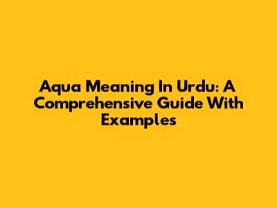 Aqua Meaning In Urdu: A Comprehensive Guide With Examples