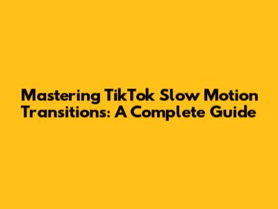 Mastering TikTok Slow Motion Transitions: A Complete Guide