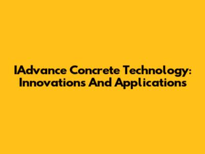 IAdvance Concrete Technology: Innovations And Applications