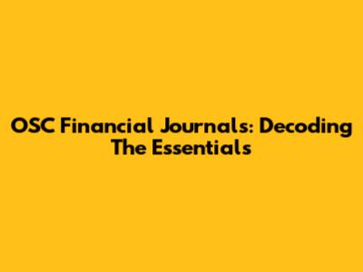 OSC Financial Journals: Decoding The Essentials