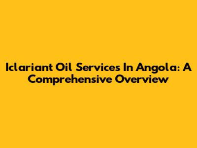 Iclariant Oil Services In Angola: A Comprehensive Overview
