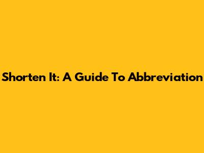 Shorten It: A Guide To Abbreviation