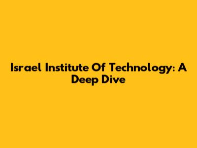 Israel Institute Of Technology: A Deep Dive