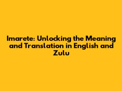 "Imarete" in Zulu: Unveiling the Zulu Translation