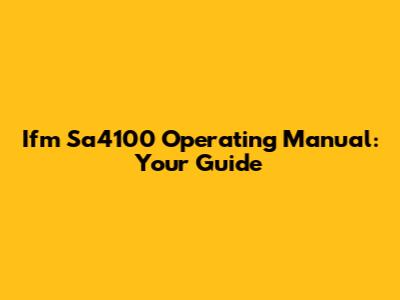 Ifm Sa4100 Operating Manual: Your Guide