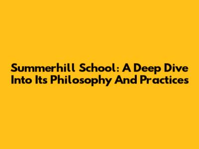Summerhill School: A Deep Dive Into Its Philosophy And Practices
