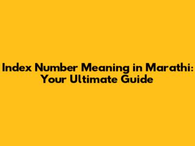 Unpacking the Basics: Index Number Definition in Marathi