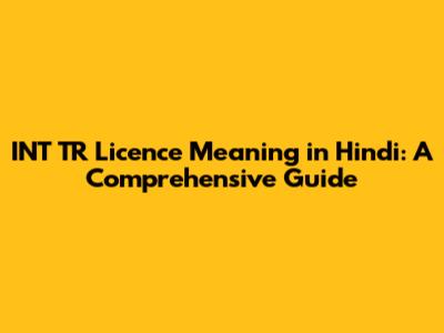 The Importance of Understanding the INT TR Licence in Hindi