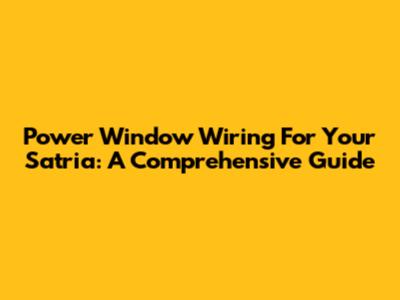 Power Window Wiring For Your Satria: A Comprehensive Guide